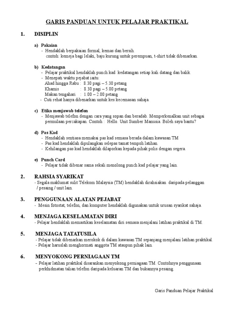 Garis Panduan Pelajar Praktikal Pdf