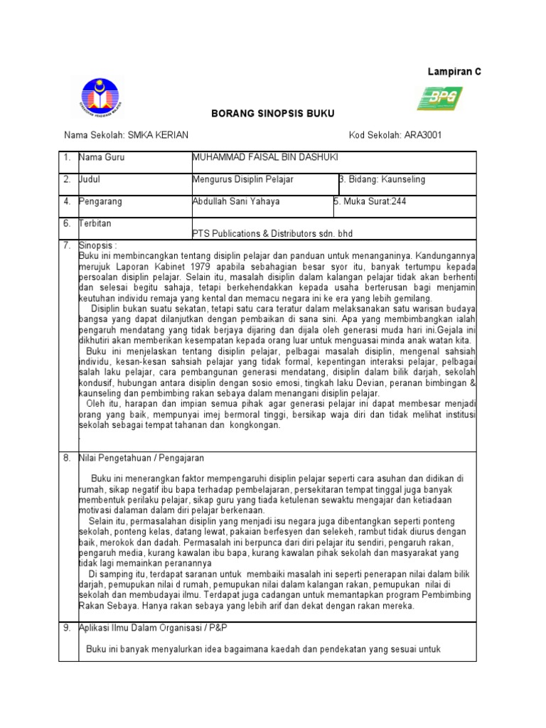 Buku-buku ini diterbit dan diedarkan ke sekolah-sekolah untuk panduan pentadbir sekolah guru-guru murid-murid malah ada yang dikhususkan untuk ibu bapa. Laporan peti aduan disiplin. Teknik-Teknik Penyelesaian MasalahPenambahbaikan 24 6.